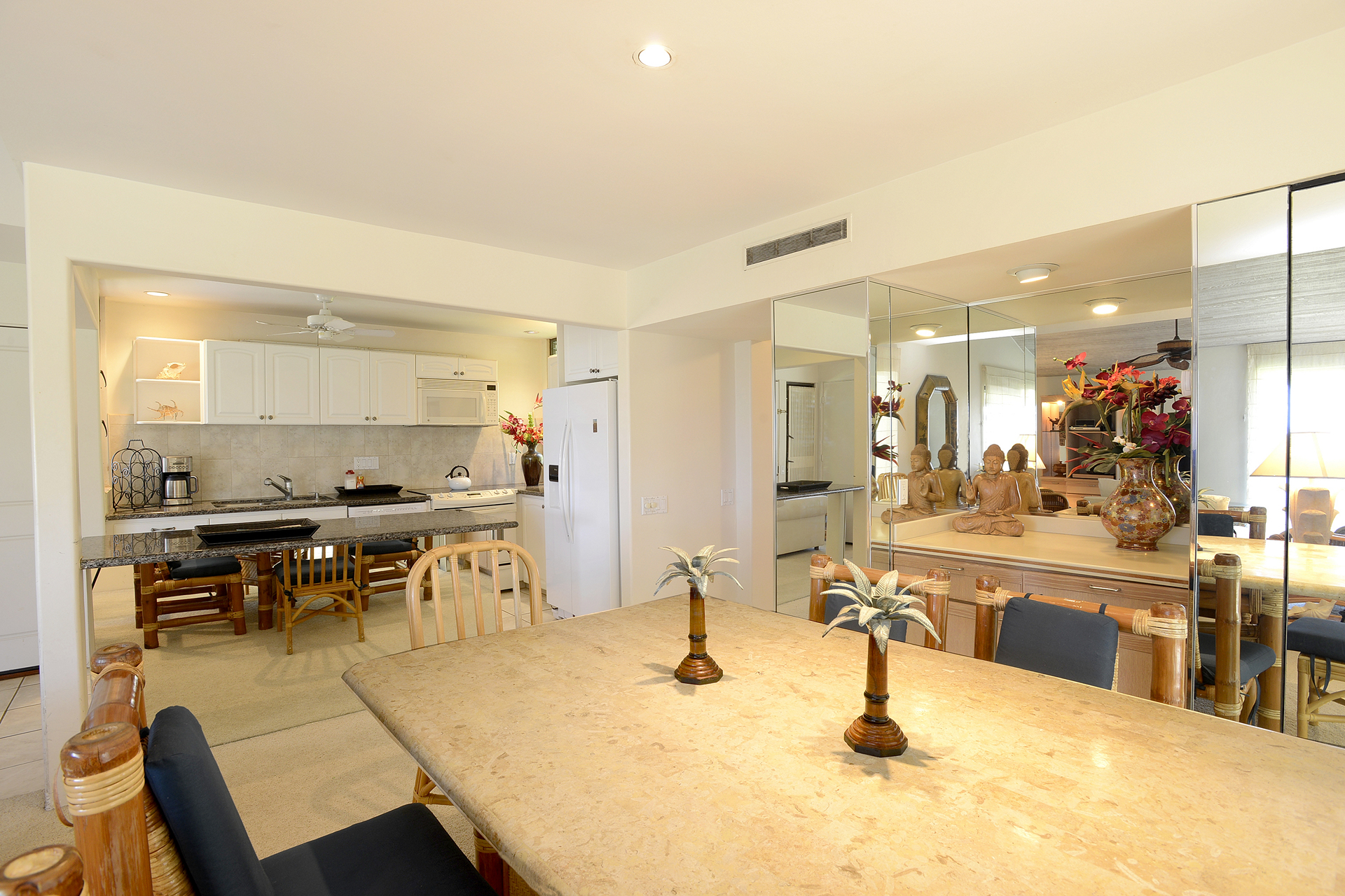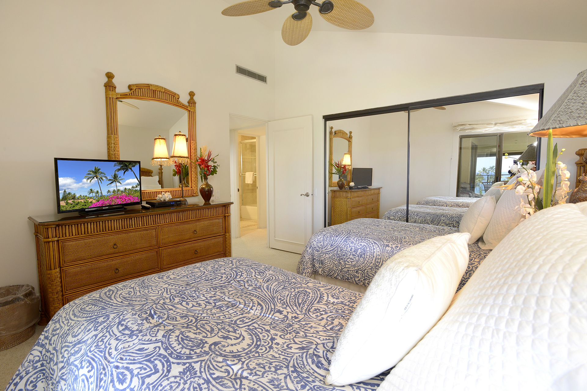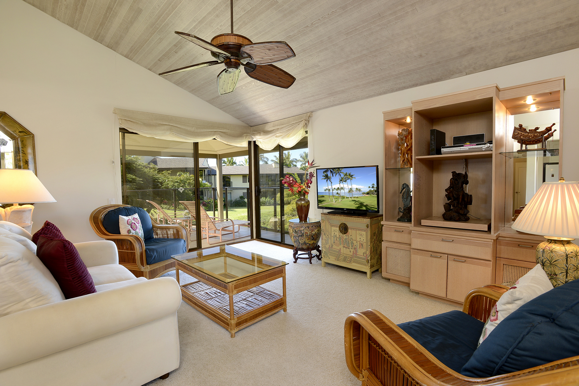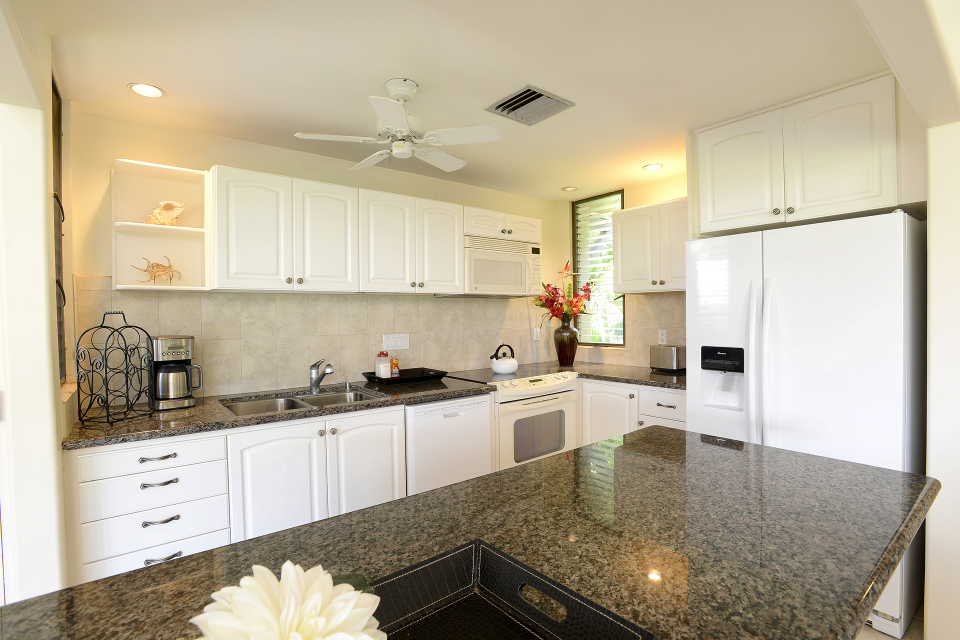 Ideal for families, couples and friendly get-togethers, the beautifully appointed one-, two- and three-bedroom condominiums offer spectacular ocean or garden views and luxury amenities including weekly housekeeping and concierge service. Each condo has a private lanai, is tastefully furnished and has a fully equipped kitchen with dishwasher and microwave as well as a washer/dryer, cable TV and A/C.