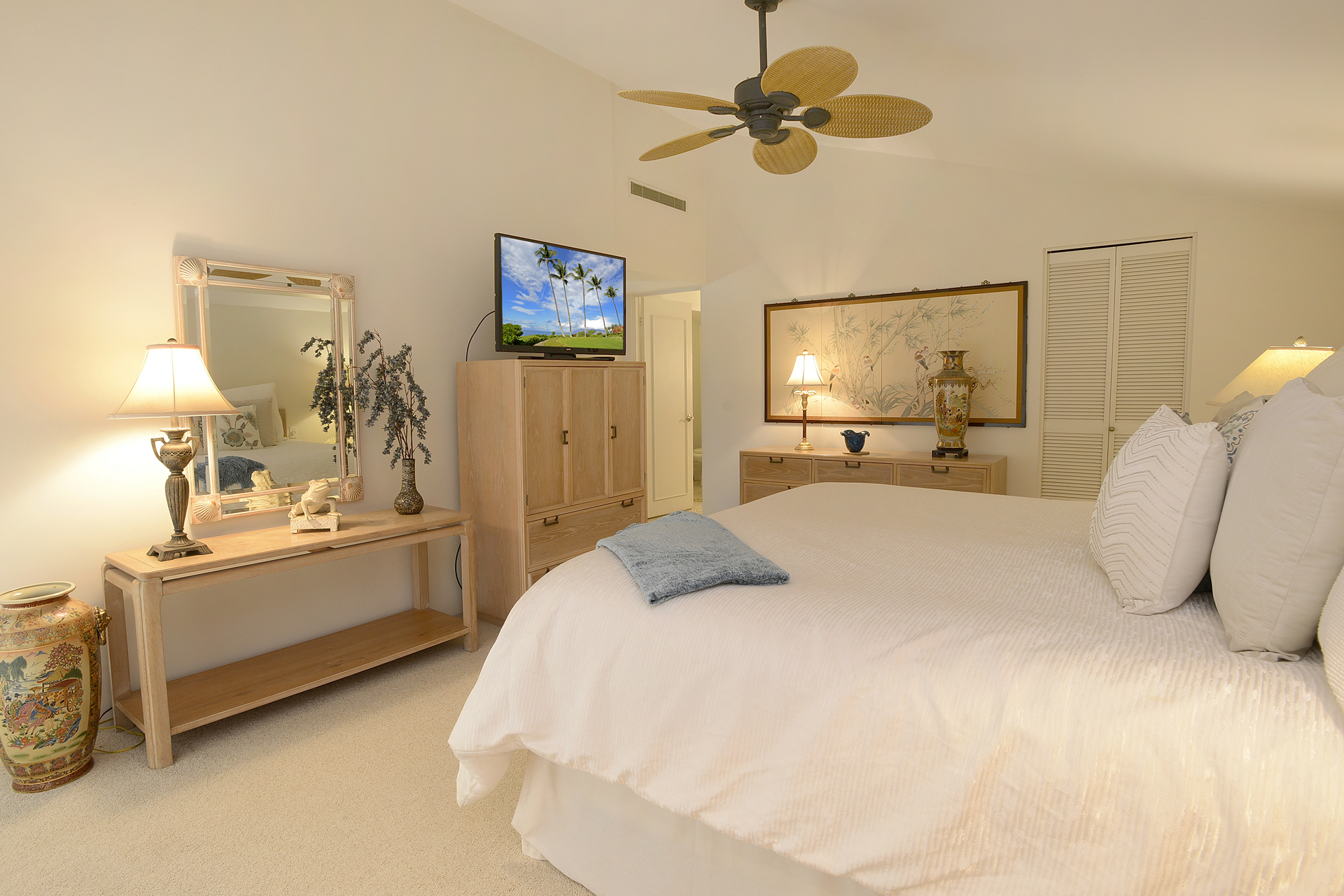 This is a Top Floor condominium with big ocean views from the lanai and living room. Wailea Elua Village is a premier vacation property located directly on Ulua beach in Wailea and features 152 condos on 24 acres of lush tropical landscapes, luxury accommodations and breath-taking ocean views in a low-rise village atmosphere.